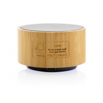 3W wireless speaker made with FSC? 100% bamboo casing and RCS (Recycled Claim Standard) certified recycled ABS. Total recycled content: 16% based on total item weight. RCS certification ensures a completely certified supply chain of the recycled materials. The speaker has an integrated light at the bottom. The speaker is equipped with a 300 mAh battery to ensure up to 3 hours of playing time and BT4.1 for smooth connection and clear sound. Connection range up to 10 metres. With mic to answer calls. Packed in FSC mix FSC? box. Including RCS certified recycled TPE charging cable. Item and accessories 100% PVC free.