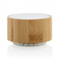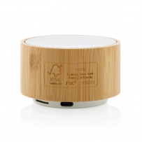 3W wireless speaker made with FSC? 100% bamboo casing and RCS (Recycled Claim Standard) certified recycled ABS. Total recycled content: 16% based on total item weight. RCS certification ensures a completely certified supply chain of the recycled materials. The speaker has an integrated light at the bottom. The speaker is equipped with a 300 mAh battery to ensure up to 3 hours of playing time and BT4.1 for smooth connection and clear sound. Connection range up to 10 metres. With mic to answer calls. Packed in FSC mix FSC? box. Including RCS certified recycled TPE charging cable. Item and accessories 100% PVC free.