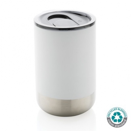 Kubek termiczny 360 ml, podwójne ścianki z próżnią pomiędzy, utrzymuje temperaturę napojów ciepłych do 3 godzin oraz zimnych do 6 godzin, wieczko zapobiegające rozlewaniu, wykonany ze stali nierdzewnej z recyklingu z certyfikatem RCS (Recycled Claim Standard) który gwarantuje, że wykorzystane materiały pochodzą z recyklingu, całkowita zawartość materiału z recyklingu obliczona w oparciu o wagę całkowitą przedmiotu: 83%, w pudełku z papieru kraftowego