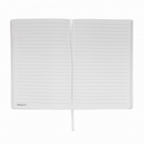 Notatnik A5 (64 białe kartki 58 g/m2 w linie), twarda okładka, notatnik wykonany z papieru kamiennego, który składa się w 80% z proszku mineralnego i 20% nietoksycznego HDPE (czysty plastik), 2% wpływów z każdego sprzedanego produktu z kolekcji Impact jest przekazywane na rzecz Water.org