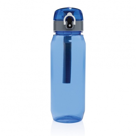 Butelka sportowa 800 ml, uchwyt, wykonana z RPET, nie wymaga obsługi oburącz, całkowita zawartość materiałów z recyklingu obliczona na podstawie wagi całkowitej przedmiotu: 73%, wyłącznie mycie ręczne, zalecana wyłącznie do zimnej wody, w pudełku z papieru kraftowego