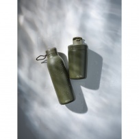 Butelka termiczna 500 ml, podwójne ścianki ze stali nierdzewnej z recyklingu z próżnią pomiędzy, zawartość materiałów z recyklingu obliczona na podstawie wagi całkowitej przedmiotu: 97%, utrzymuje temperaturę napojów ciepłych do 10 godzin oraz zimnych do 20 godzin, pasuje do większości uchwytów samochodowych