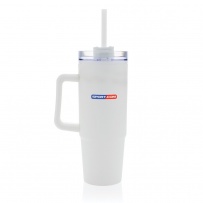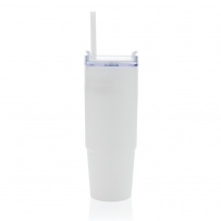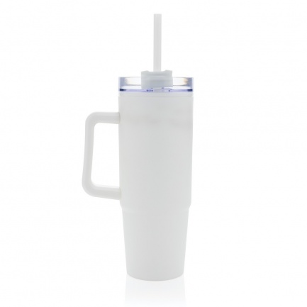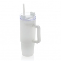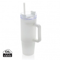Kubek podróżny 900 ml, ergonomiczny uchwyt, obrotowe wieczko trzema pozycjami (dziubek do picia, otwór na słomkę, zamknięte), wykonany z materiałów z recyklingu, całkowita zawartość materiałów obliczona na podstawie wagi całkowitej przedmiotu: 80%, wyłącznie mycie ręczne, w pudełku z papieru kraftowego
