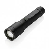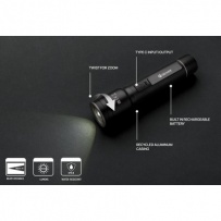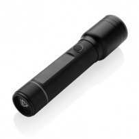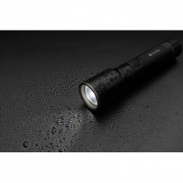 Latarka 10W o bardzo jasnym świetle, wodoodporna IP4, wiązka 1500 lumenów sięgająca do 800 m, wysokiej jakości żarówka z 5 trybami świecenia, w tym SOS, wbudowany akumulator 4000 mAh pozwala na około 10 godzin ciągłego świecenia, ładowana za pomocą USB, wykonana z aluminium z recyklingu z certyfikatem RCS, całkowita zawartość materiałów z recyklingu obliczona w oparciu o wagę całkowitą przedmiotu: 20%, w pudełku z papieru kraftowego