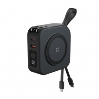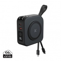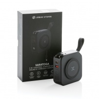 Ładowarka 5 w 1, power bank 10000 mAh, ładowarka ścienna, magnetyczna ładowarka bezprzewodowa 15W, adapter podróżny (Australia, UE, Wielka Brytania, USA, Azja), stojak na telefon, działa z telefonami posiadającymi możliwość ładowania indukcyjnego, wyjście USB, wyjście USB typu C, zintegrowane kable, ślad węglowy produktu: 2,51 kg CO2
