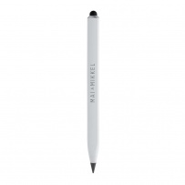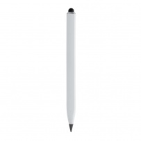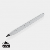 Ołówek, linijka, touch pen, wykonany aluminium z recyklingu, dzięki wykorzystaniu specjalnej wolnościerającej się grafitowej końcówki długość pisania ołówka to około 20 000 metrów w porównaniu z tradycyjnym ołówkiem którego długość pisania to około 200 metrów, notatki można zmazać standardową gumką do mazania, ślad węglowy produktu: 0,1 kg CO2