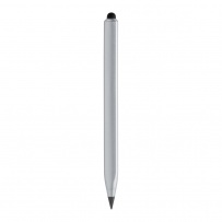 Ołówek, linijka, touch pen, wykonany aluminium z recyklingu, dzięki wykorzystaniu specjalnej wolnościerającej się grafitowej końcówki długość pisania ołówka to około 20 000 metrów w porównaniu z tradycyjnym ołówkiem którego długość pisania to około 200 metrów, notatki można zmazać standardową gumką do mazania, ślad węglowy produktu: 0,1 kg CO2
