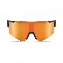 Lunettes de sport avec verres miroirs et monture noire. Protection UV400.
