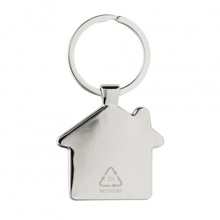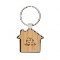 Brelok do kluczy ?domek?, wykonany z metalu z recyklingu z certyfikatem RCS i bambusa, całkowita zawartość materiałów z recyklingu obliczona na podstawie wagi całkowitej produktu: 76%