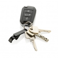 Otwieracz do butelek i puszek, wykonany z aluminium z recyklingu, całkowita zawartość materiałów z recyklingu obliczona w oparciu o wagę całkowitą przedmiotu: 79%