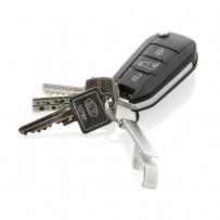 Otwieracz do butelek i puszek, wykonany z aluminium z recyklingu, całkowita zawartość materiałów z recyklingu obliczona w oparciu o wagę całkowitą przedmiotu: 79%