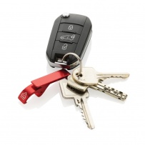 Otwieracz do butelek i puszek, wykonany z aluminium z recyklingu, całkowita zawartość materiałów z recyklingu obliczona w oparciu o wagę całkowitą przedmiotu: 79%
