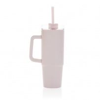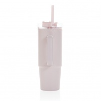 Kubek podróżny 900 ml, ergonomiczny uchwyt, obrotowe wieczko trzema pozycjami (dziubek do picia, otwór na słomkę, zamknięte), wykonany z materiałów z recyklingu, całkowita zawartość materiałów obliczona na podstawie wagi całkowitej przedmiotu: 80%, wyłącznie mycie ręczne, w pudełku z papieru kraftowego