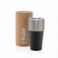 This 500ml tumbler features a distinctive double-coloured exterior with a stylish half-and-half design. The double-wall recycled stainless steel vacuum construction keeps beverages chilled for up to 15 hours or warm for up to 5 hours. The Fluid Tumbler fits most standard car cup holders, making it perfect for on-the-go use. Made with RCS (Recycled Claim Standard) certified recycled materials, ensuring a completely certified supply chain of the recycled materials. Spill proof & BPA free. Includes FSC?certified kraft tube gift packaging. Total recycled content: 81% based on total item weight.