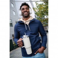 Meet Stadley, the ultimate 1200 ml tumbler designed for those who need a little extra. Its comfort-grip handle and slim base make it easy to carry and fit into most cup holders, keeping you hydrated on the go. Outside made from durable recycled stainless steel, Stadley?s double-walled, vacuum-insulated body keeps drinks at the perfect temperature. It features a spill-proof lid with a dual function for sipping or using the included recycled steel straw with a silicone tip. RCS-certified, with 29% recycled content, and BPA-free. Perfectly practical and lower impact, we recommend handwashing.Bulk packed.
