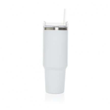Kubek termiczny 1200 ml, podwójne ścianki z próżnią pomiędzy dzięki czemu kubek posiada funkcję termosu, posiada słomkę i szeroki otwór do picia, wykonany z materiałów z recyklingu, całkowita zawartość materiałów z recyklingu obliczona na podstawie wagi całkowitej produktu: 29%