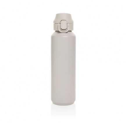 The Via RCS bottle is made from certified recycled 304 steel. This waterbottle features single-wall construction with a unique screw-on and lockable leak-resistant lid. Single hand operation. Press to open the lid for easy sip. Can be used for cold drinks only. Hand wash only. Made with RCS (Recycled Claim Standard) certified recycled materials. RCS certification ensures a completely certified supply chain of the recycled materials. Total recycled content: 73% based on total item weight. BPA free. Bulk packed. 600 ml. capacity