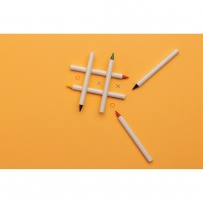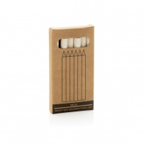 Zestaw kredek 6 el., wykonane z materiałów z recyklingu, dzięki wykorzystaniu specjalnej wolnościerającej się grafitowej końcówki długość pisania każdej kredki to około 20 000 metrów w porównaniu z tradycyjną kredką której długość pisania to około 200 metrów, rysunki można zmazać standardową gumką do mazania