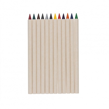 Zestaw kredek 12 el., wykonane z materiałów z recyklingu, dzięki wykorzystaniu specjalnej wolnościerającej się grafitowej końcówki długość pisania każdej kredki to około 20 000 metrów w porównaniu z tradycyjną kredką której długość pisania to około 200 metrów, rysunki można zmazać standardową gumką do mazania