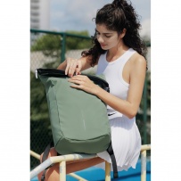 Plecak chroniący przed kieszonkowcami, zwijana przegroda główna i zamek szyfrowy wzmocniony stalą umożliwiający całkowite zamknięcie plecaka, zamek może posłużyć również do przypięcia plecaka do stałego obiektu, ukryte kieszenie do przechowywania dokumentów i kart kredytowych z tyłu torby oraz w pasku na ramię z ochroną RFID, kieszeń boczna, odpinana elastyczna siatka na sprzęt sportowy w komplecie, wewnątrz usztywnione przegrody na laptopa 16" lub tablet, siateczkowe kieszenie na inne przedmioty osobiste, całkowita zawartość materiałów z recyklingu obliczona w oparciu o wagę całkowitą przedmiotu: 11%, wzór zastrzeżony?
