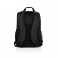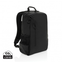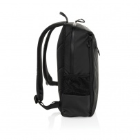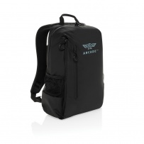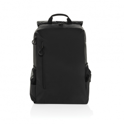 Wodoszczelny plecak na laptopa 15,6", wykonany z RPET, tył wykonany z PU, posiada wbudowany znacznik AWARE?, główna przegroda oraz dwie przednie kieszenie zamykane na zamek błyskawiczny, kieszeń na laptopa z paskiem zapinanym na rzep, dwie wewnętrzne kieszenie z ochroną RFID, dwie pętle do zaczepiania długopisów, dwie boczne kieszenie, regulowane paski na ramię zwiększające komfort użytkowania, uchwyt, dwie siateczkowe kieszenie boczne, regulowane paski na ramię zwiększające komfort użytkowania, wodoodporny zamek błyskawiczny z przodu i z tyłu, który lepiej chroni przed czynnikami atmosferycznymi, posiada wbudowany znacznik AWARE?, 2% wpływów z każdego sprzedanego produktu z kolekcji AWARE? jest przekazywane na rzecz Water.org
