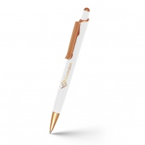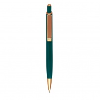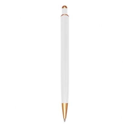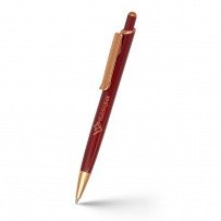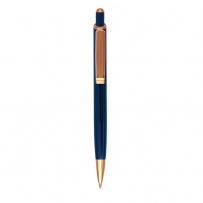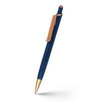 Ball pen with coloured barrel and shiny details in rose gold colour, writes in blue, product made from aluminium