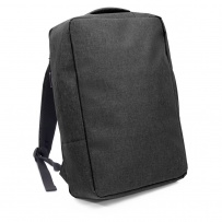 Laptop backpack 15,6" with side handle enabling it to function as a laptop bag, zipped main compartment with padded laptop or document sleeve, 2 small pockets and 2 pen loops inside, zipper with extra puller enabling easy unzipping, strap to fix on trolley handle, adjustable shoulder straps enable regulating their length according to individual preferences, product made from RPET