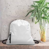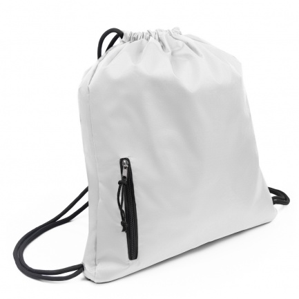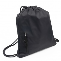Spacious drawstring bag, thick string allows it to be worn on the back, made of reinforced water-resistant material which offers more protection from the weather, can fit groceries or workout clothes for the gym, a modern design, features a functional front pocket for small items with zipper, product made from polyester 230 g/m2