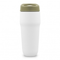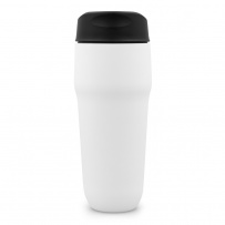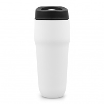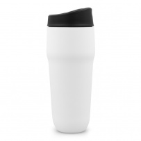 Kubek termiczny 400 ml Air Gifts, posiada podwójne ścianki ze stali nierdzewnej i ceramiki z próżnią między ściankami, co spowalnia oddawanie temperatury na zewnątrz, zachowując funkcje termosu, plastikowe wieczko z przyciskiem otwarcia/zamknięcia ustnika umożliwiającym obsługę jedną ręką, wieczko może zostać rozkręcone w celu ułatwienia czyszczenia, matowe wykończenie, produkt wykonany ze stali nierdzewnej, ceramiki i plastiku, utrzymuje temperaturę napojów gorących do 15 godzin +leakproof