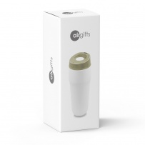 Air Gifts thermo mug 400 ml, features double stainless steel and ceramic walls with vacuum insulation that slow down the release of temperature to the surroundings, functioning like a thermos, plastic lid with closure enables one-handed use, the lid can be disassembled for easier cleaning, matte finish, product made from stainless steel, ceramics and plastic, keeps beverages hot for up to 15 hours +leakproof
