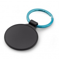 Round keyring with special space for personalization, engraving reveals a coloured surface, black gift box included, product made of metal