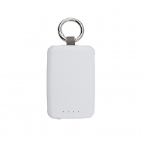 Power bank 4000 mAh with a carabiner for attaching, can fit in a pocket or most backpack compartments, features built-in 1W light with 3 lighting modes: beam of light (2 modes) and flashing light (SOS signal), 2 integrated cables: USB-C and tip compatible with iOS devices which allows you to simultaneously charge two devices with different connectors, features 4 diodes indicating power level, lamp working time on 1 power bank charging cycle: >24h, USB-C input, included USB-C cable, product made from ABS and metal