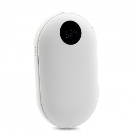 Power bank 5000 mAh, front and back have rubber finish, features a hand-warming function with 3 intensity modes (max. 42°C / max. 47°C / max. 52°C), USB output 5V/2A, USB-C 5V/2A input, features digital display of battery level, hand-warming working time on 1 power bank charging cycle: approx. 6h, included USB-C cable, product made from ABS