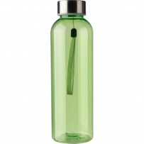Sports bottle 500 ml, suitable for water and cold non-carbonated drinks, with stainless steel lid and wrist cord for easier carrying, product made from RPET