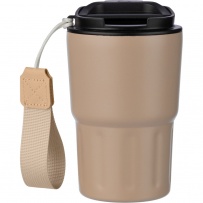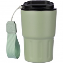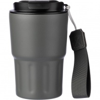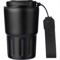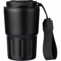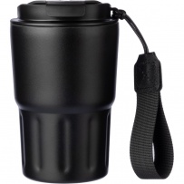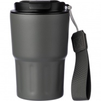 Thermo mug 320 ml, features stainless steel double walls with vacuum insulation that slow down the release of temperature to the surroundings, functioning like a thermos, carrying band for easier handling, easy to open with one hand, PP lid features a practical opening enabling one-handed use, keeps the temperature of hot and cold drinks well, keeps beverages hot for up to 10 hours +leakproof