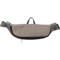 Waist bag , large main compartment and front pocket with zipper, adjustable shoulder strap with buckle closure, made of polyester with PU lining and PE foam bottom (3 mm)