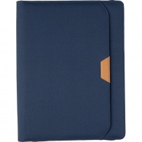 Teczka konferencyjna w formacie ok. A4, posiada 20 kartek w linie, przegródki na dokumenty, pętelka na długopis, mała przednia kieszeń, pakowane pojedynczo w brązowe kraftowe pudełko, produkt wykonany z RPET