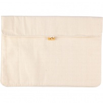 Laptop pouch 15", helps to avoid dirt and dust, minimalist design, an aesthetic way of storing a laptop, notes, or study books, with bamboo element and rope closure, product made from cotton 120 gr/m?