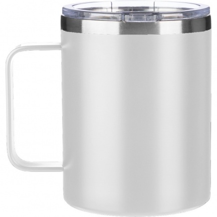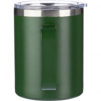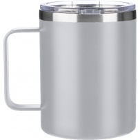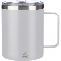 Travel mug 300 ml with double walls, which prevent the outer wall of the mug from heating up, matte finish, lid with an opening makes drinking favourite beverage easier, includes recycled stainless steel icon on product, product made from recycled stainless steel