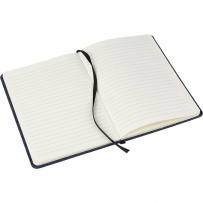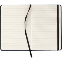 Notebook approx. size A5 with 80 lined pages, elegant cover, bookmark ribbon for easy marking of the last page or important notes, fits inside of a school backpack, an extra elastic band closure in matching colour, product made from denim