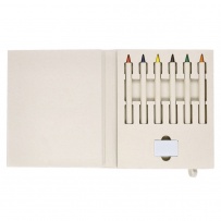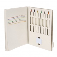 Eternal Color Pencil Set Made from Recycled Milk Cartons. This set includes 6 eternal color pencils, an eraser, and a notebook with 50 blank sheets. With convenient elastic closure and Recycled Milk Carton logo.Milk cartons are mostly made of cardboard and Aluminium. During the recycling process, the different packaging materials are separated for reuse and re-purposing, thus contributing to the infinite path of the circular economy. This material is well known for its high recyclability, as well as for its lightweight and resistance.