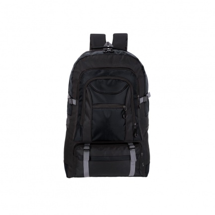 Backpack made from durable 600D polyester. With main compartment with double zipper closure and inner lining, multiple front pockets with zipper closures and comfortable wide-grip pulls. Includes mesh side pockets. Padded back, adjustable and padded shoulder straps, as well as an adjustable waist strap.