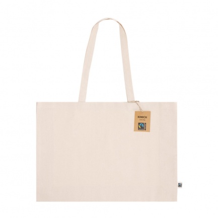 Bag made mainly of 220g/m2 cotton. With Fairtrade certification, a fair and alternative trading system that promotes the development of peoples and the fight against poverty. Sewn finish with gusset, reinforced long handles of 70 cm and weight resistance up to 10 kg. Includes Fairtrade label and distinctive hangtag made of recycled cardboard.