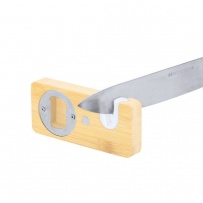 Practical 2-in-1 opener and sharpener, made from bamboo. Includes an integrated knife sharpener, bottle opener, and magnet.