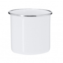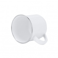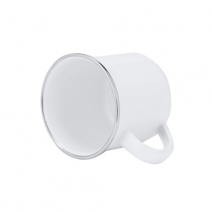 Metal mug with a capacity of 200 ml with a vintage design and glossy white finish with an elegant chrome detail on the edge. Designed especially for sublimation.