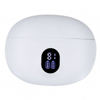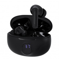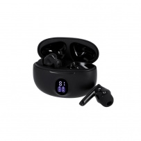 Bezprzewodowe słuchawki douszne BT 5.3 z systemem aktywnej redukcji szumów (ANC) oraz funkcją redukcji szumów otoczenia podczas rozmów (ENC), bateria słuchawek 30 mAh, posiadają etui ładujące słuchawki 230 mAh z cyfrowym wyświetlaczem, czas pracy: ok. 3-4h, kabel USB-C w komplecie, produkt wykonany z ABS