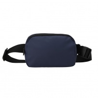 Belly bag design made from PU. Features a central pocket with zipper closure and adjustable strap with buckle closure. Additionally, it includes a rear pocket with zipper closure for added security.