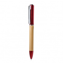 Pen with integrated LED flashlight made from bamboo. With twist mechanism for pen and side push button for on/off, with a minimalist design of original combination and metal clip. In blue ink and with button batteries included.
