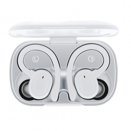 Bezprzewodowe słuchawki douszne BT 5.4, bateria słuchawek 30 mAh, posiadają etui ze stacją ładującą słuchawki 250 mAh, czas pracy: ok. 3h, kabel USB-C w komplecie, produkt wykonany z ABS