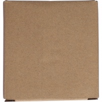 Szklany kubek 300 ml, bambusowa pokrywka, która może służyć jako podstawka, zapakowany w brązowy kartonik, produkt wykonany ze szkła z recyklingu